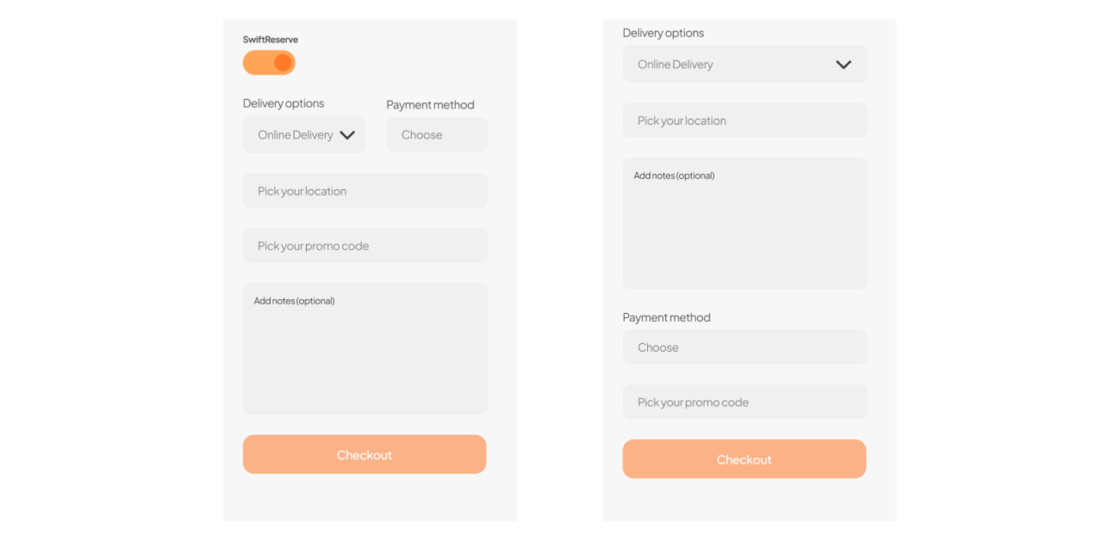 Delivery Options between the Payment Methods. The position of the two components needs to be
